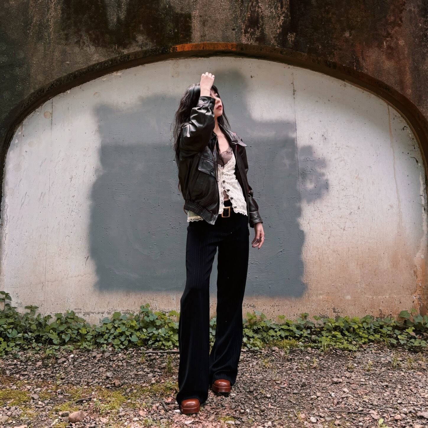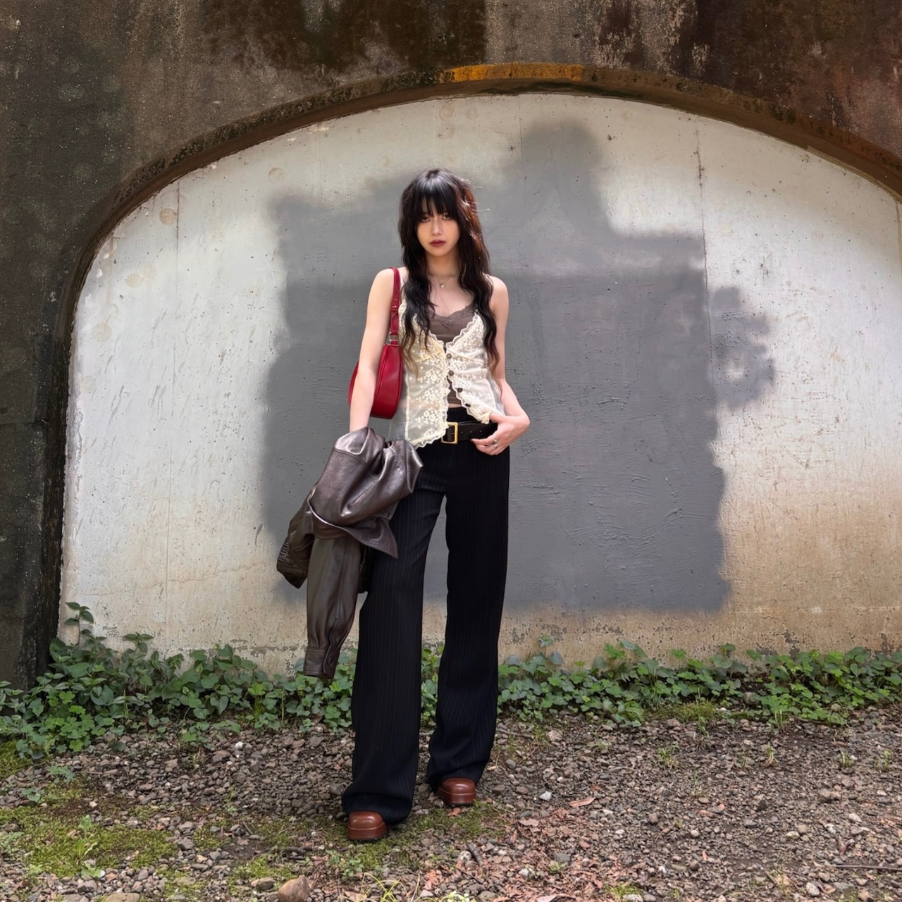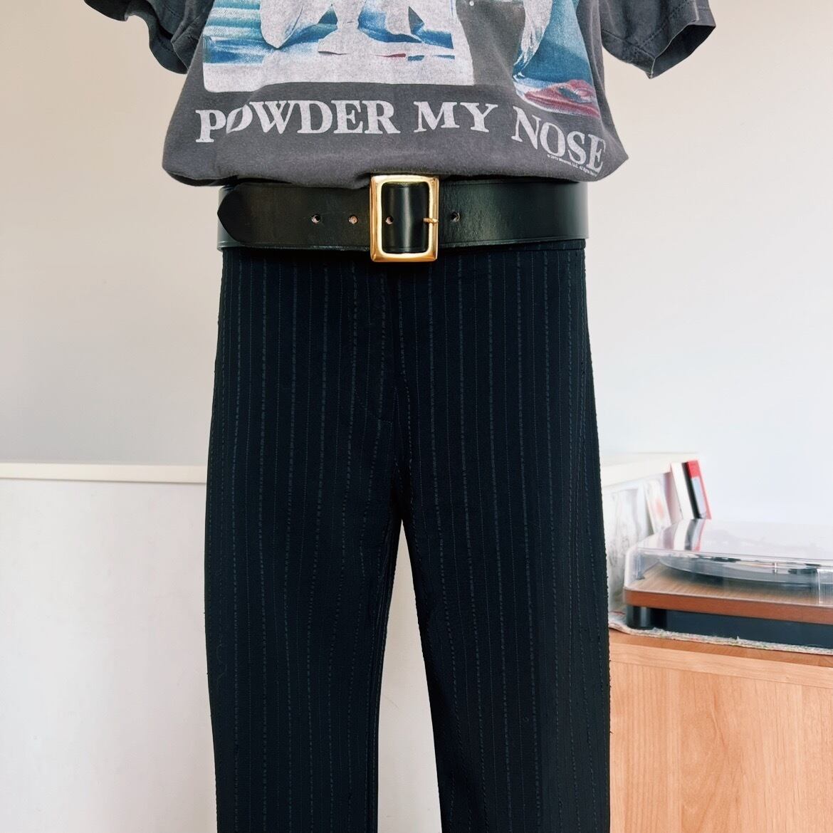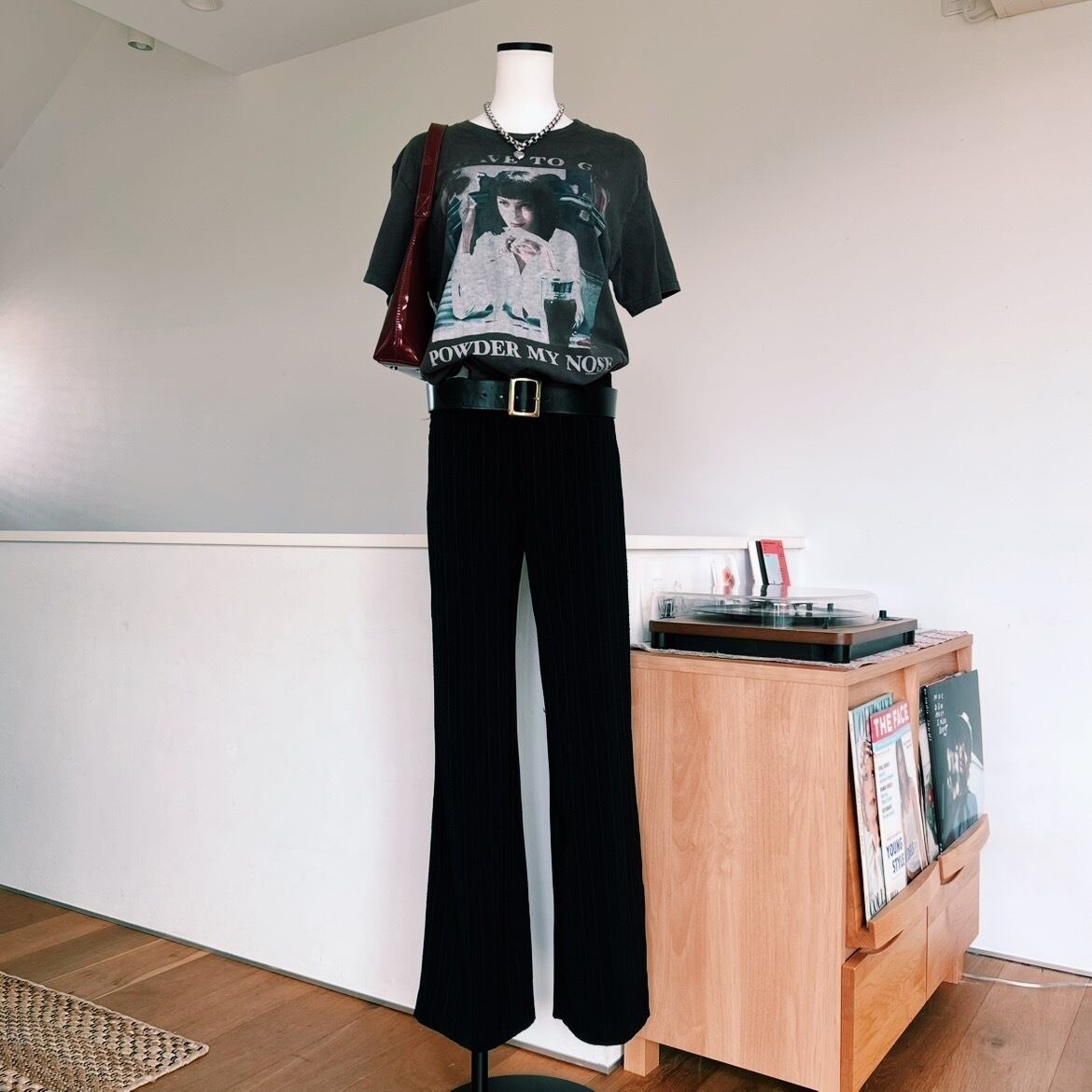 縦のラインが美しく、すらりとした脚長効果も抜群です。ややフレアの効いたシルエットが、レトロとモダンを絶妙にミックスしています。