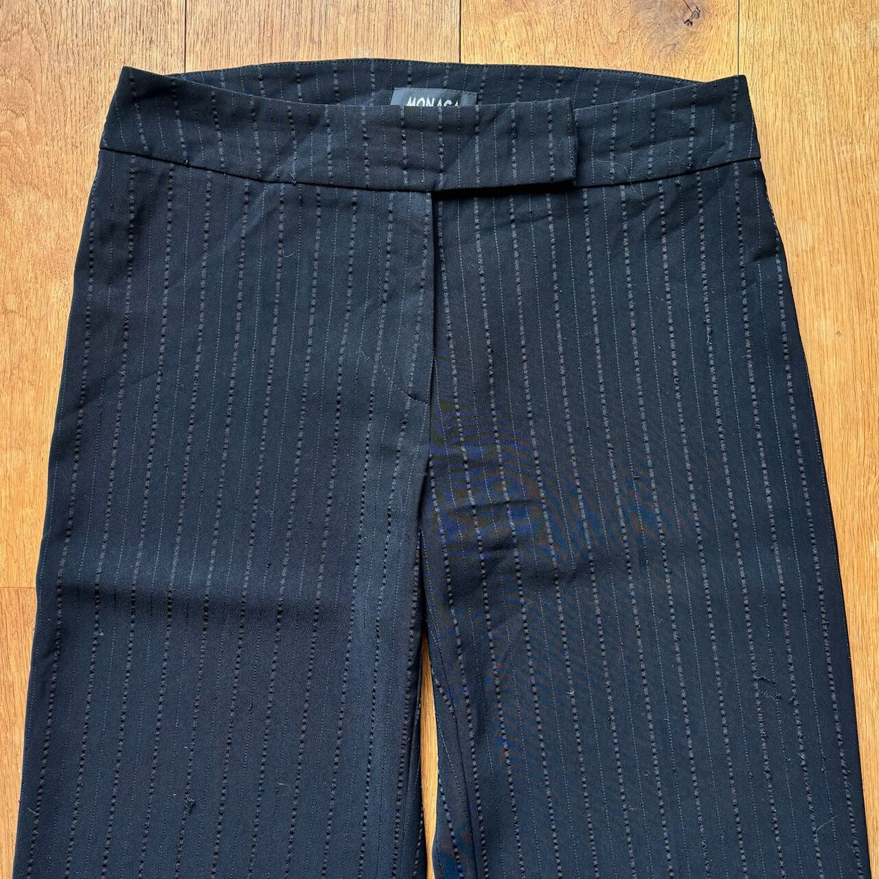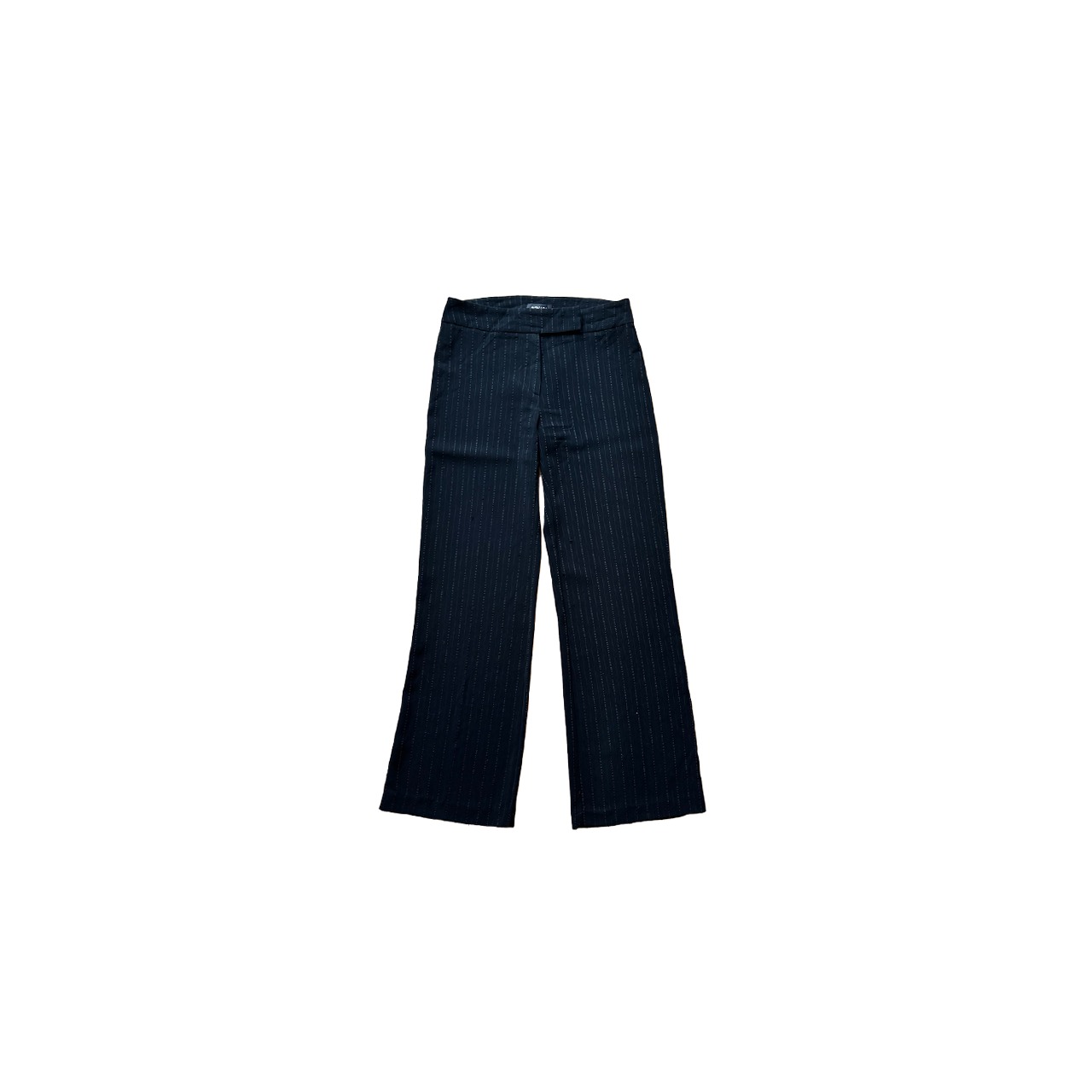 洗練されたブラックベースに、繊細なピンストライプが走るクラシックなスラックス。