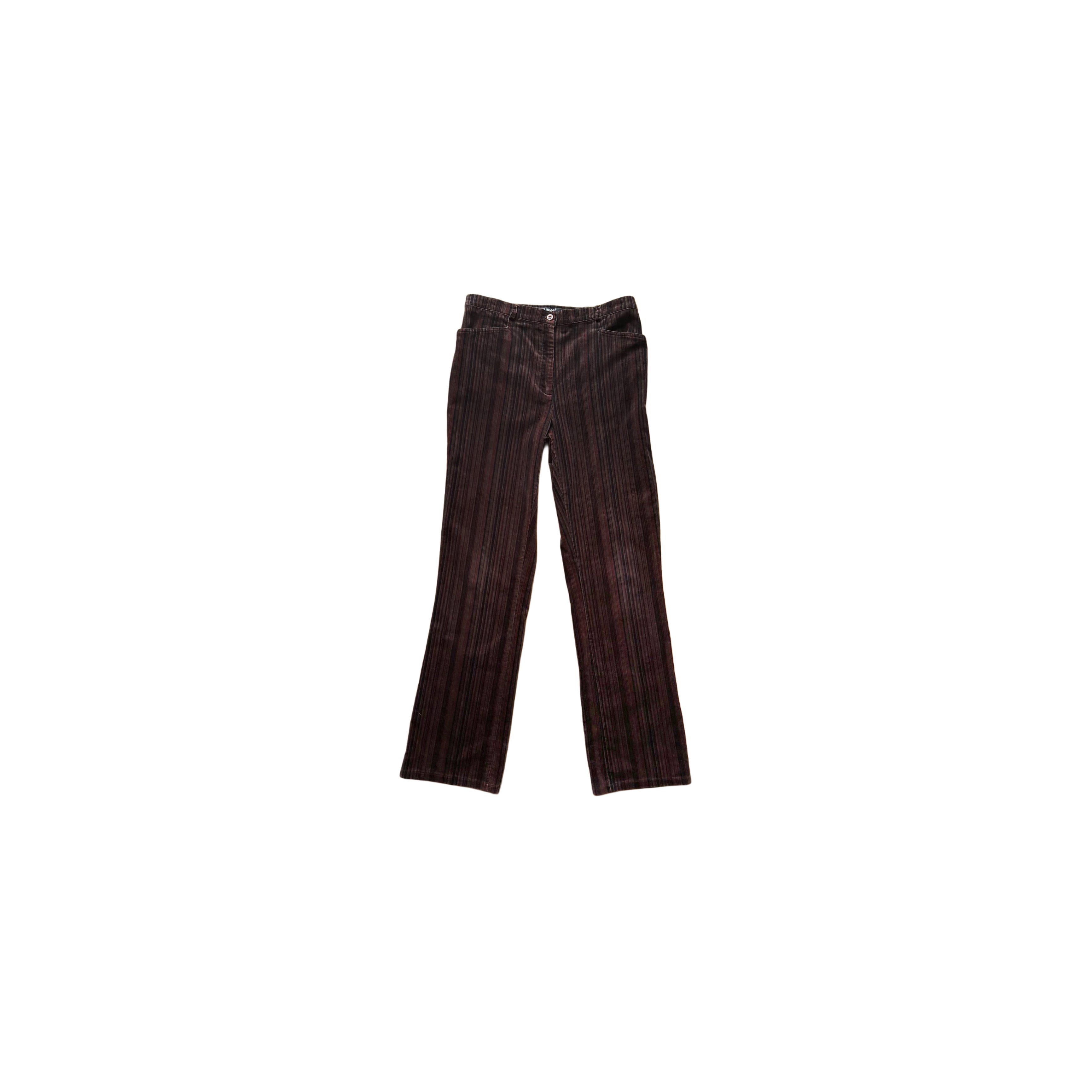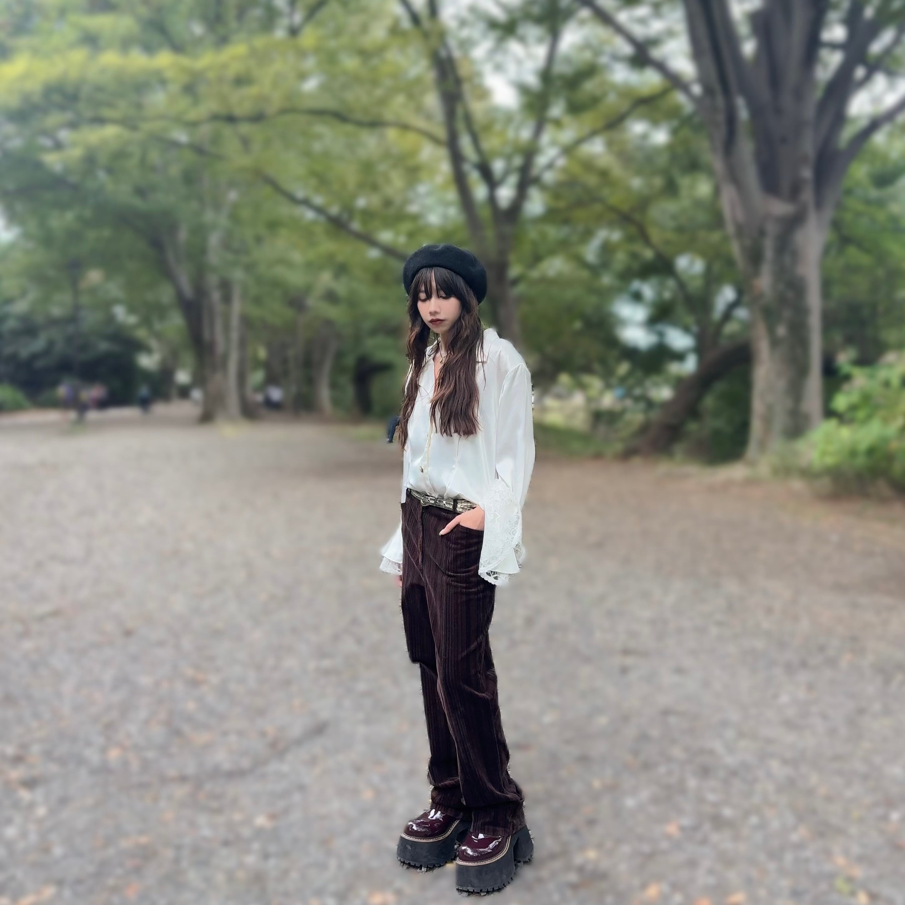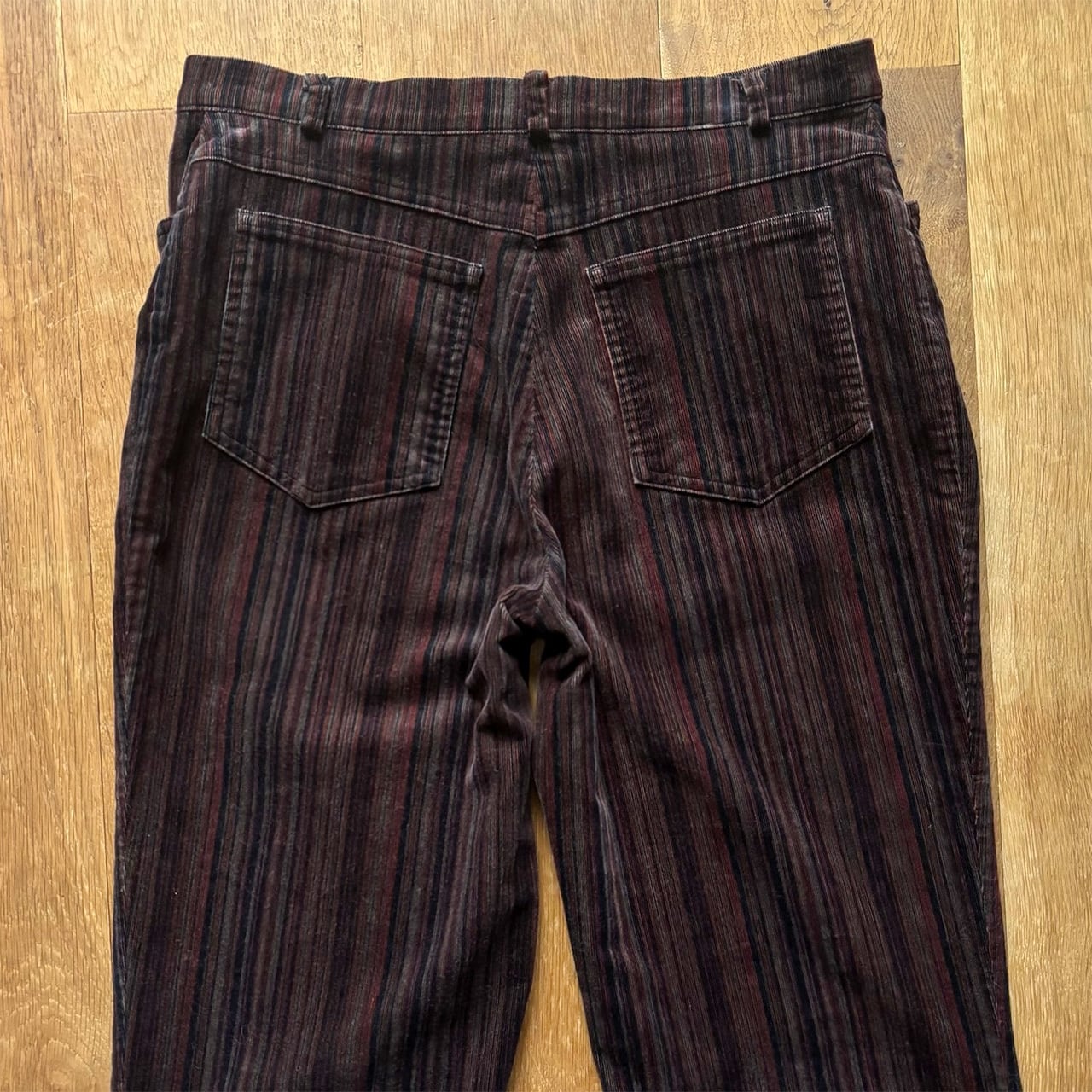 海外girlな雰囲気抜群、ダークブラウン×ブラックのストライプコーデュロイパンツ。