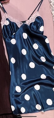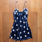 光沢感のあるサテンに大きめドットがレトロなキャミワンピ。