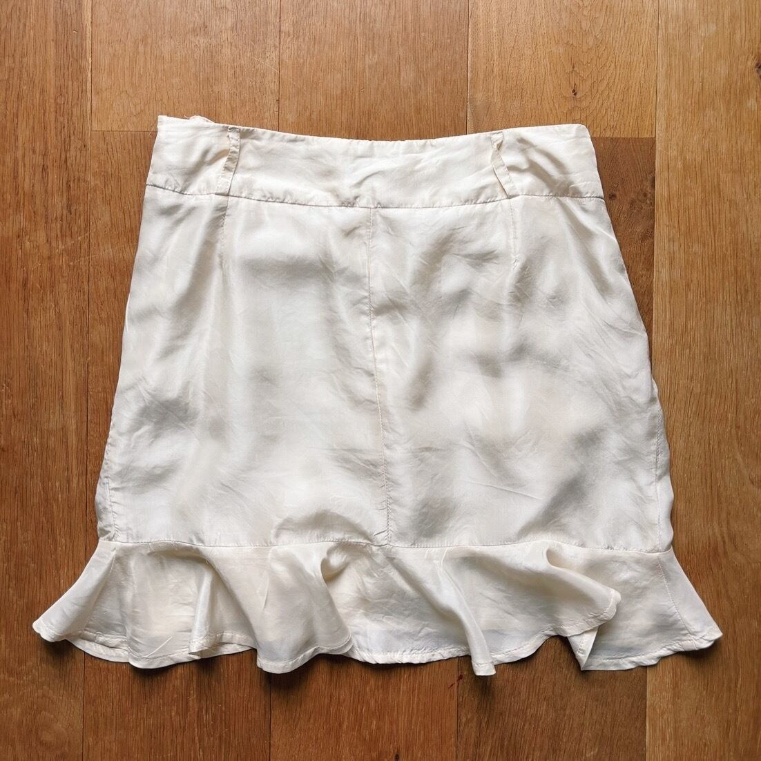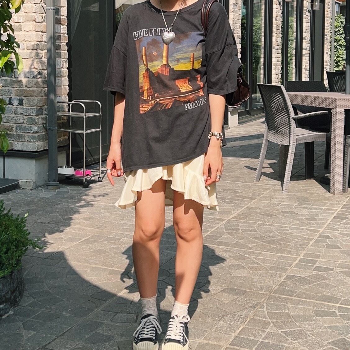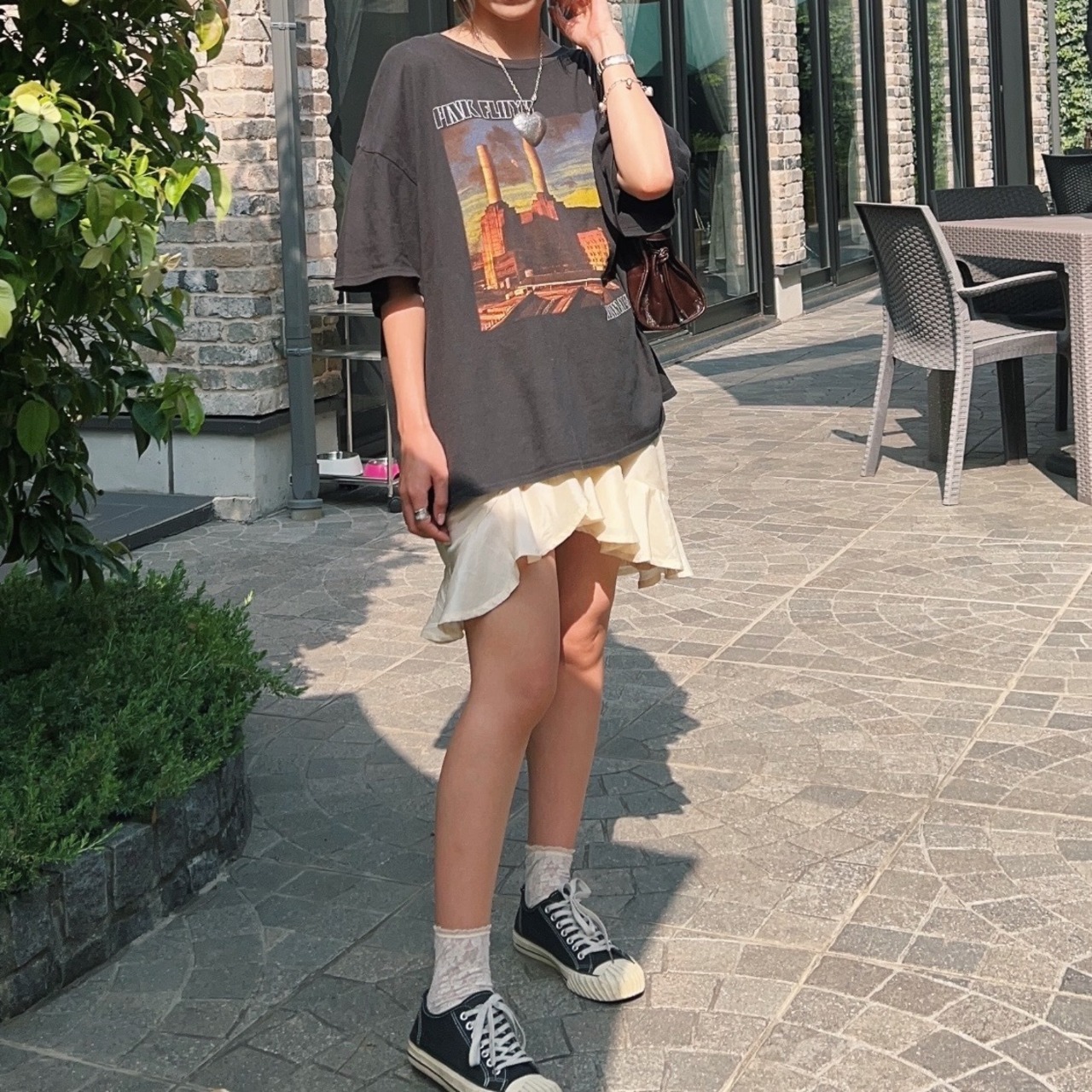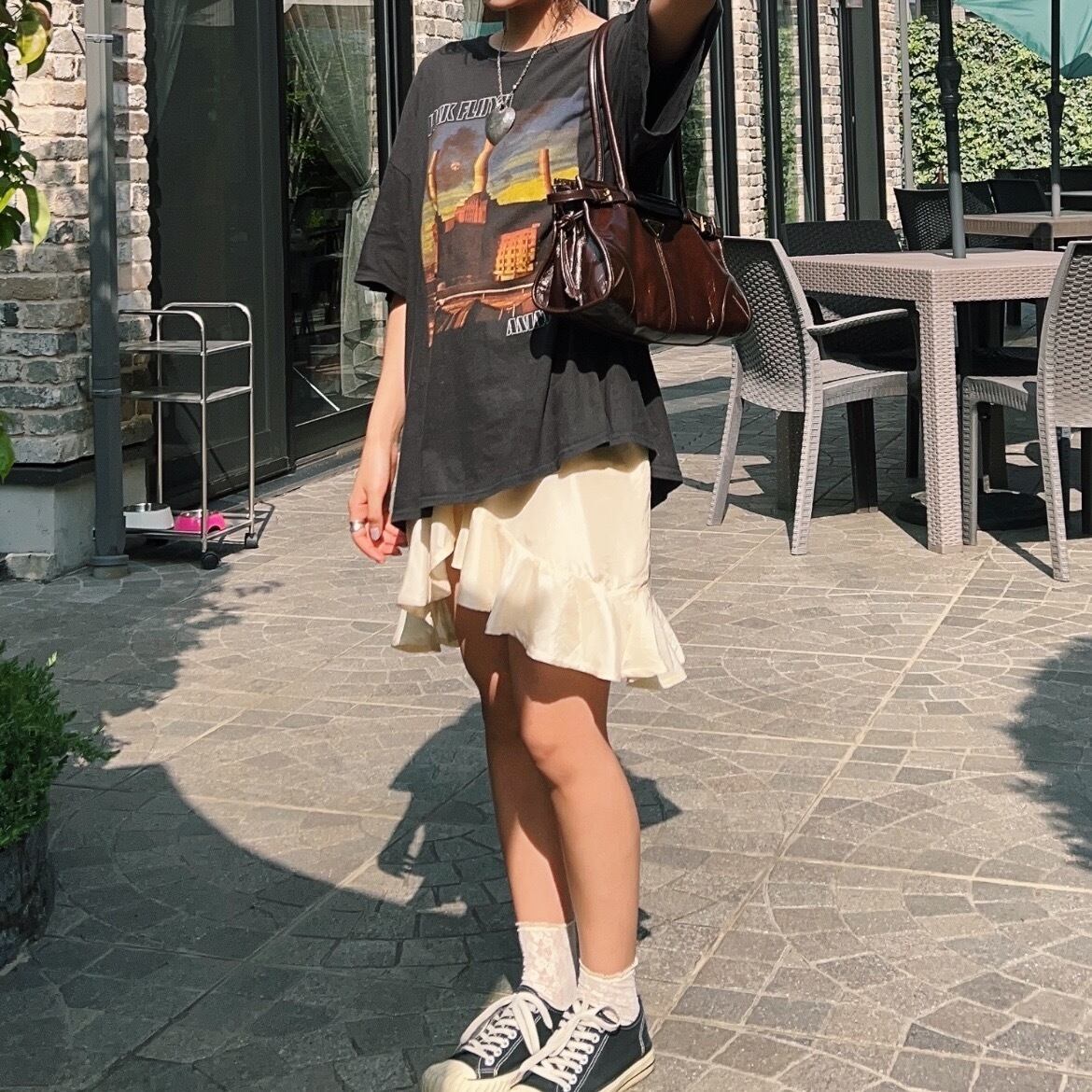 前面のフリルデザインと裾の波打つディテールがフェミニンなムード。