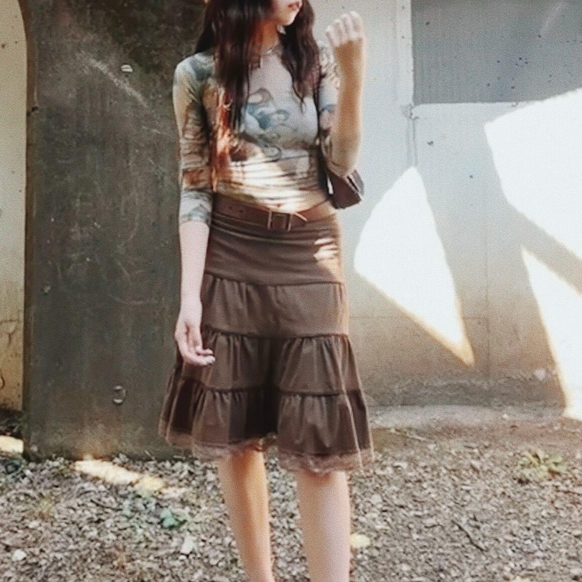 透け感のある素材で、キャミやブラトップをインしてレイヤードしてもかわいいです。