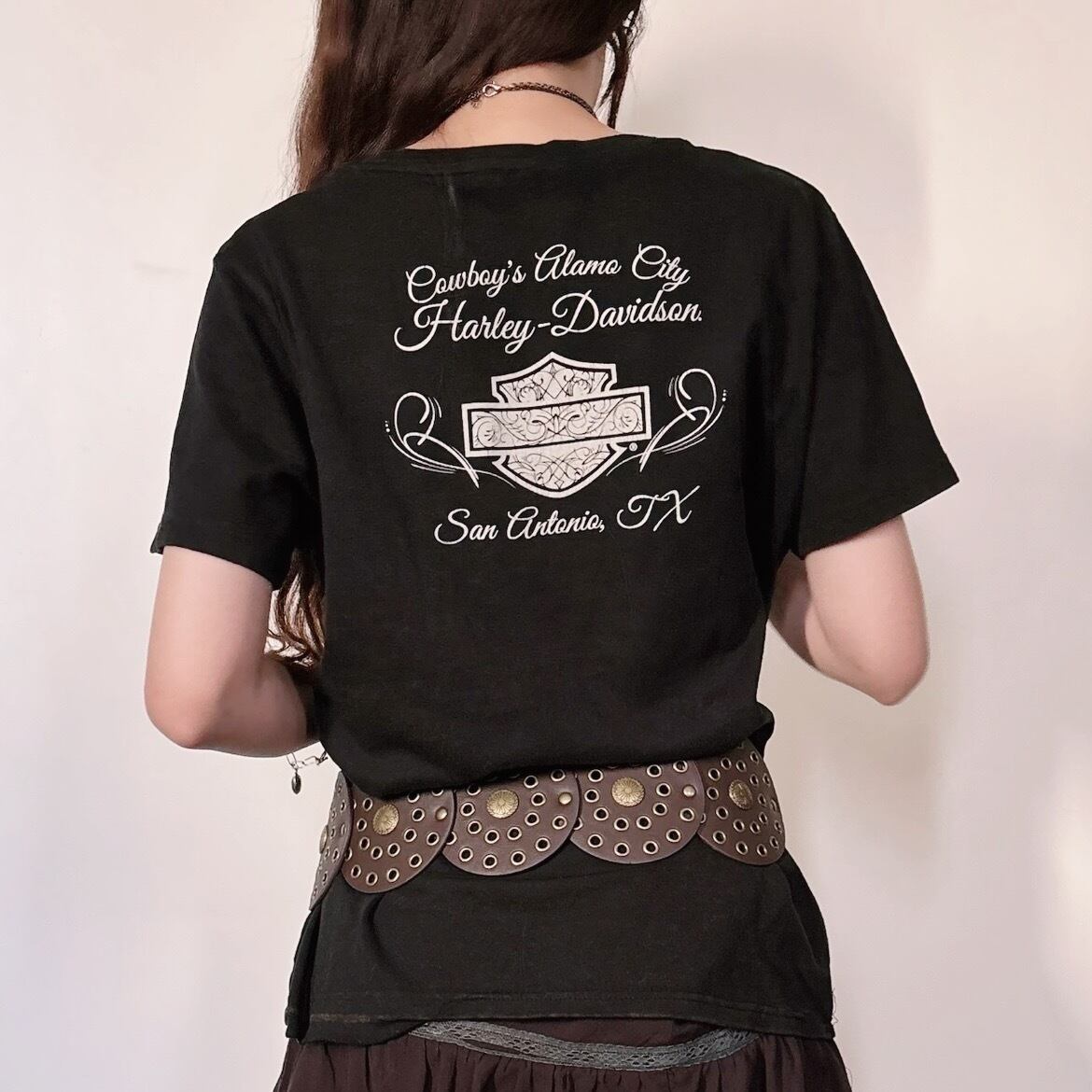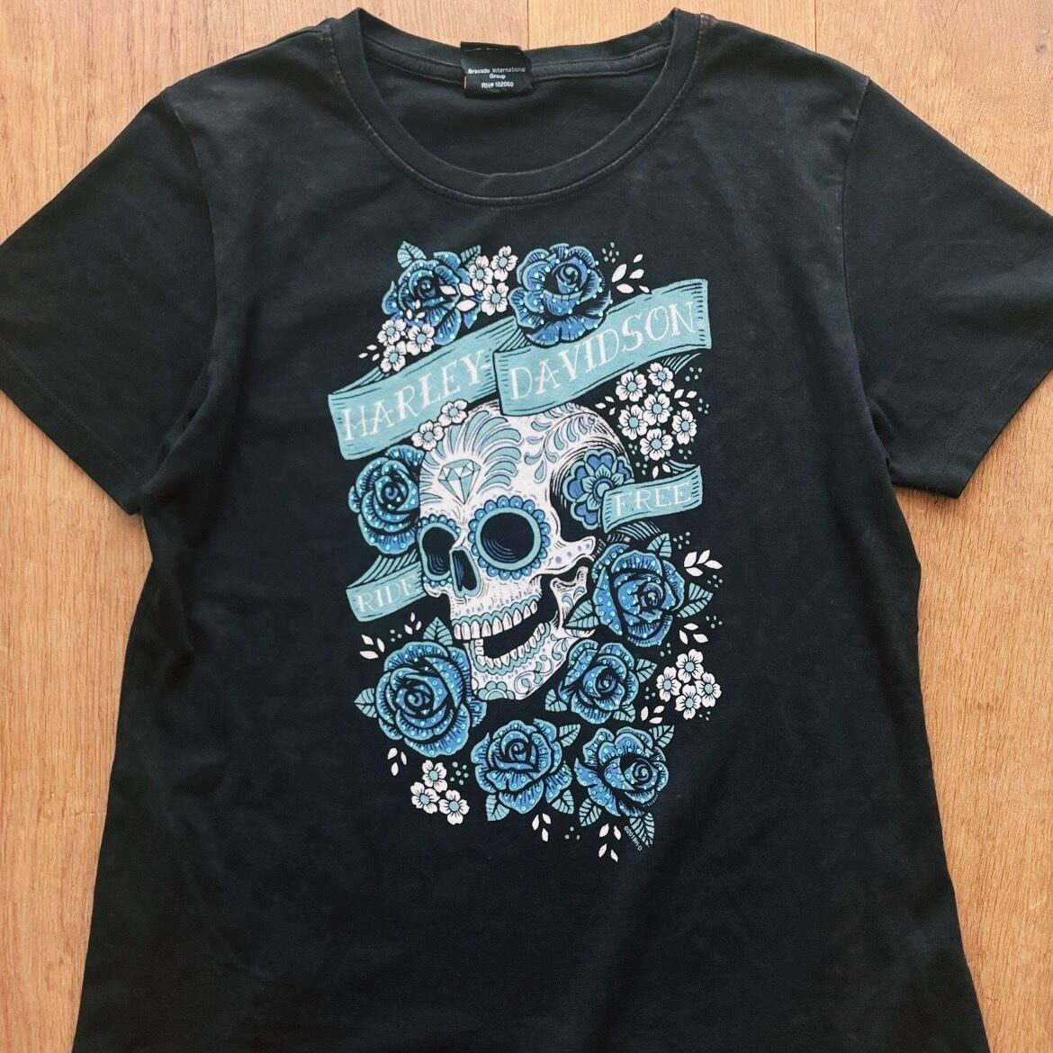 「RIDE FREE」のメッセージ入りで、ロックな存在感を放ちつつ、花モチーフが女性らしさも演出してくれます。