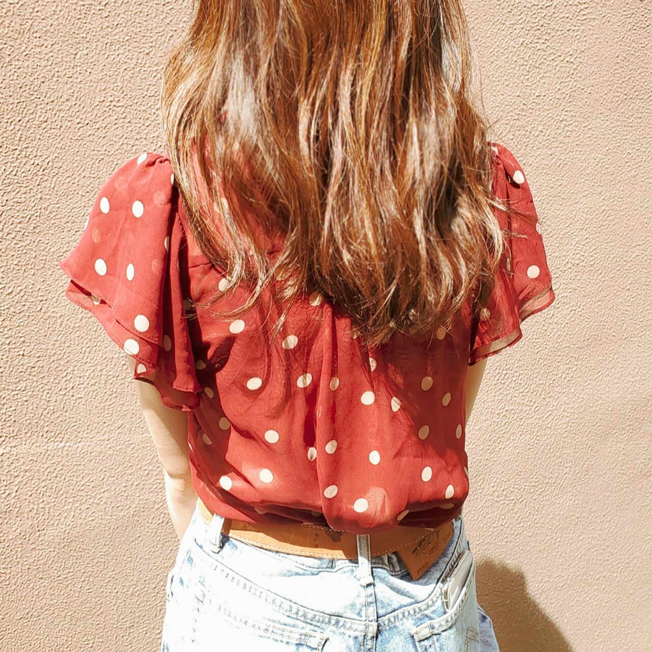 袖のフリルと縦のラインがスタイルアップ効果抜群、華奢な女の子になれます。
