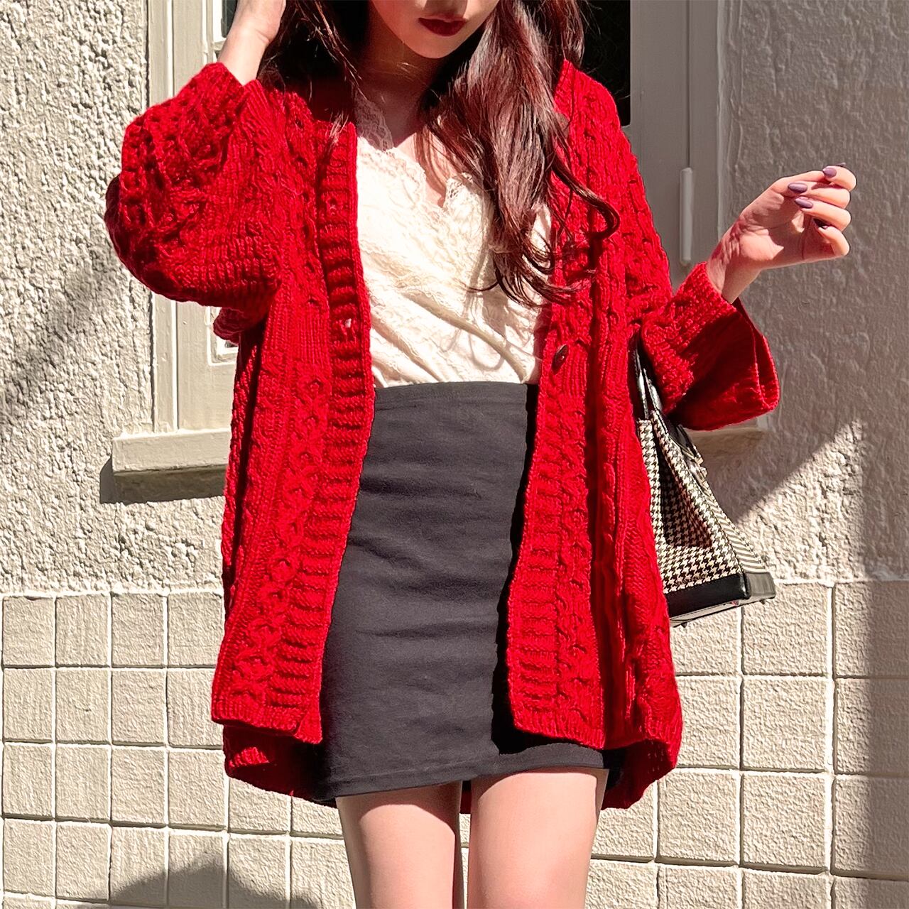 真っ赤なケーブルカーディガン