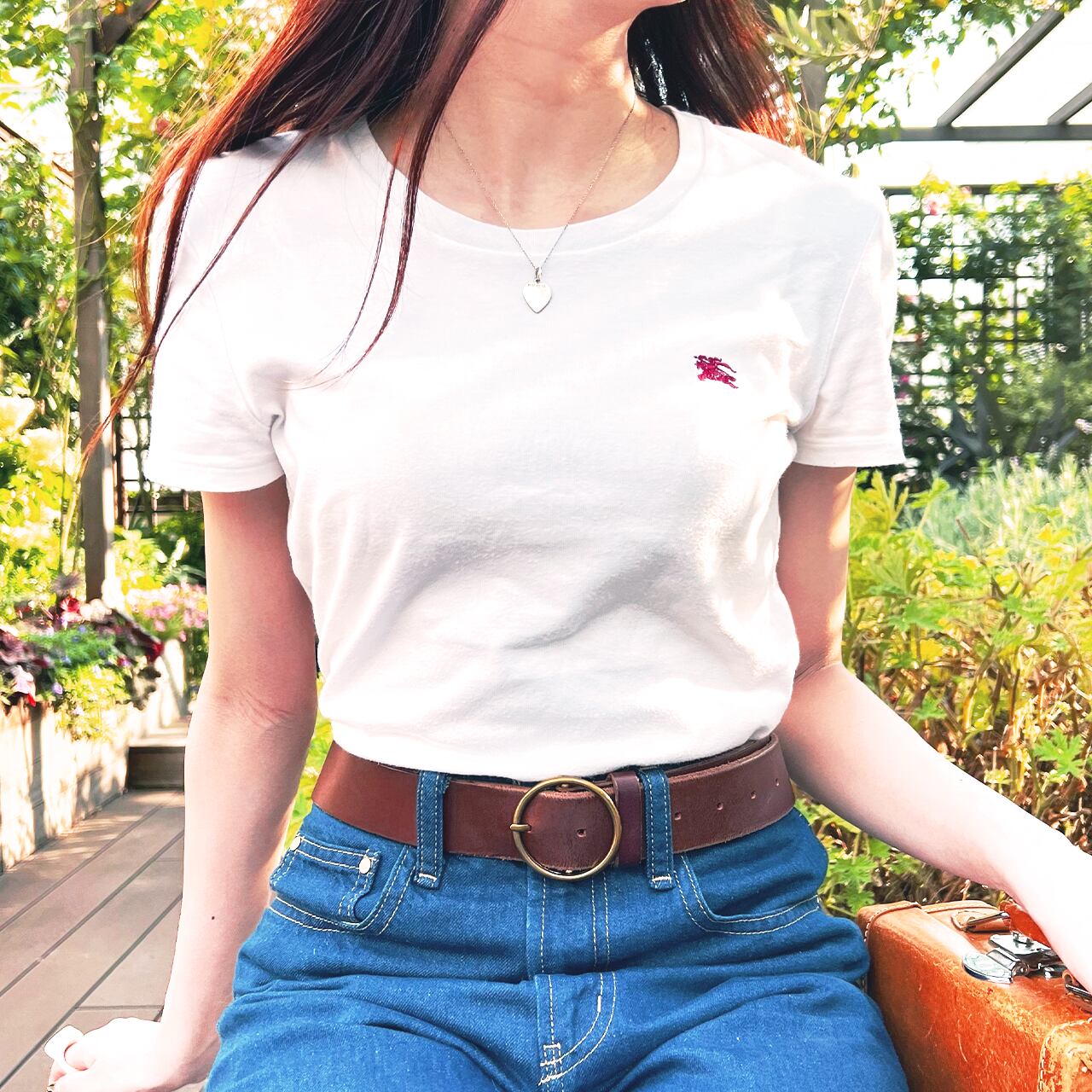 シンプルな白に赤い刺繍がかわいいTシャツ。