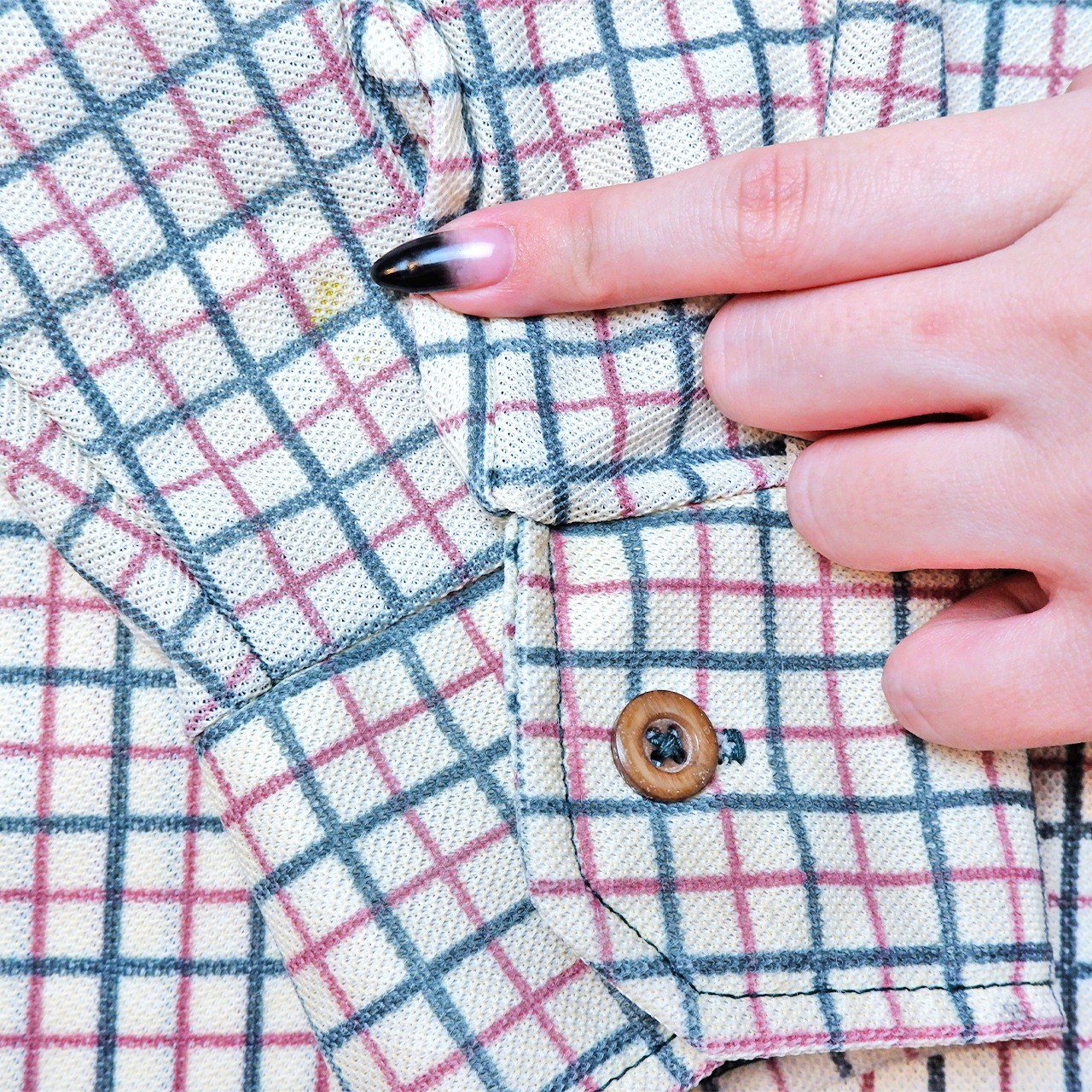 ピンクとみどりのチェックがかわいいvintageシャツ。
