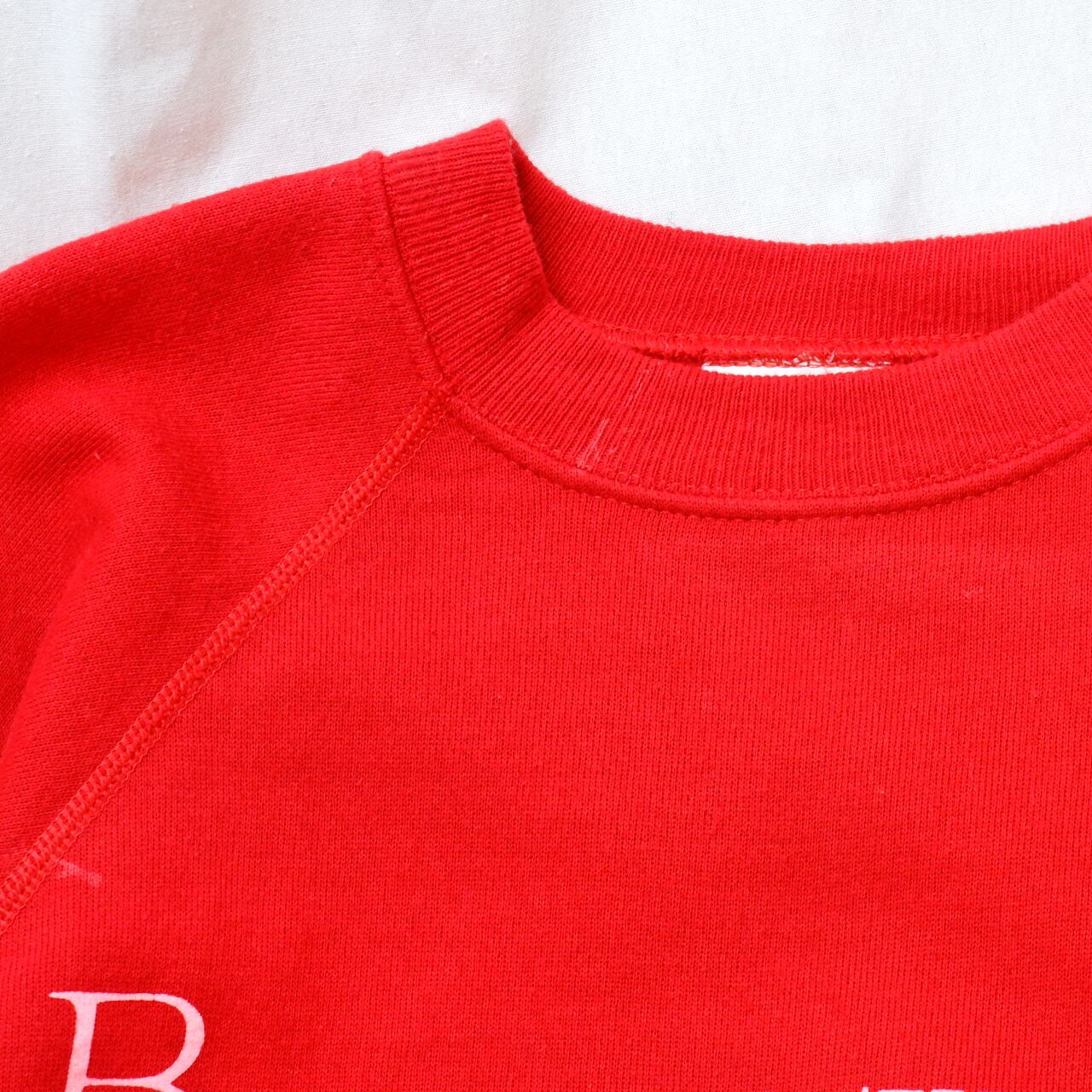 赤×ピンクに、レトロなフォントがたまらない90sスウェット。