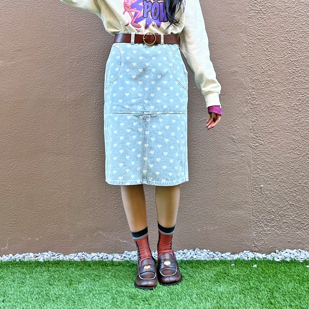 全体に散りばめられたハートがかわいいロングの台形スカート♡