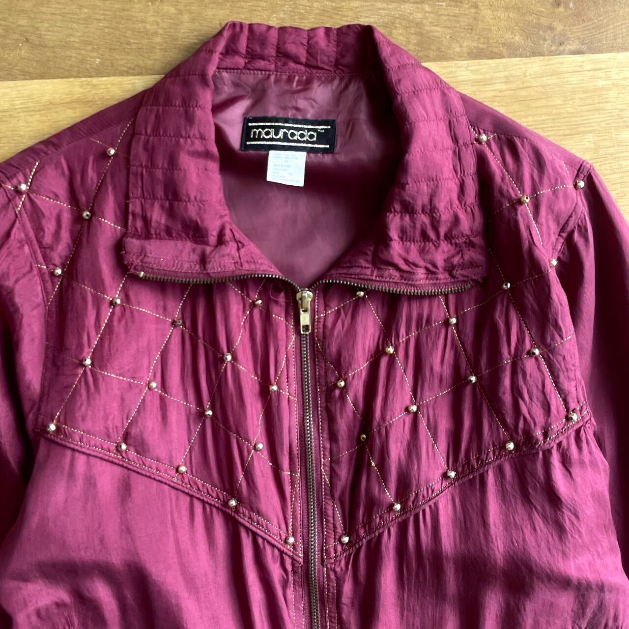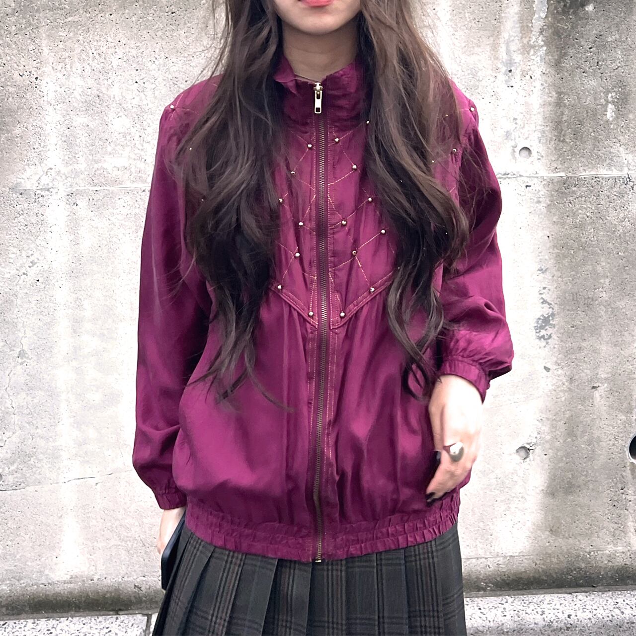 パープルにゴールドのスタッズがかわいい90sのナイロンジャケット。