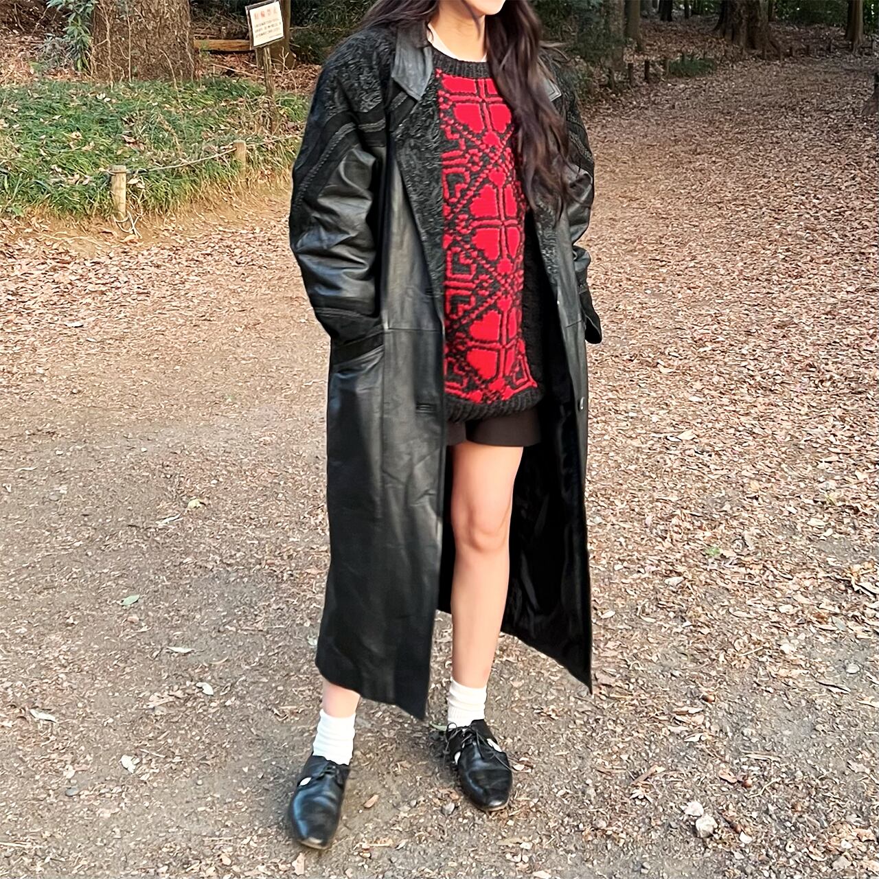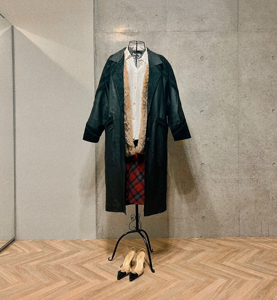 レザーなので風を通さず、スカートも履きやすいロング丈であたたか。