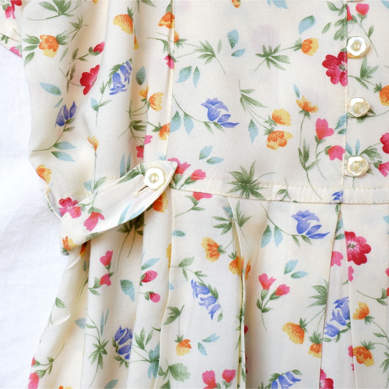 ふんわりやわらかな素材感が気持ちいいレトロな小花柄ワンピース。