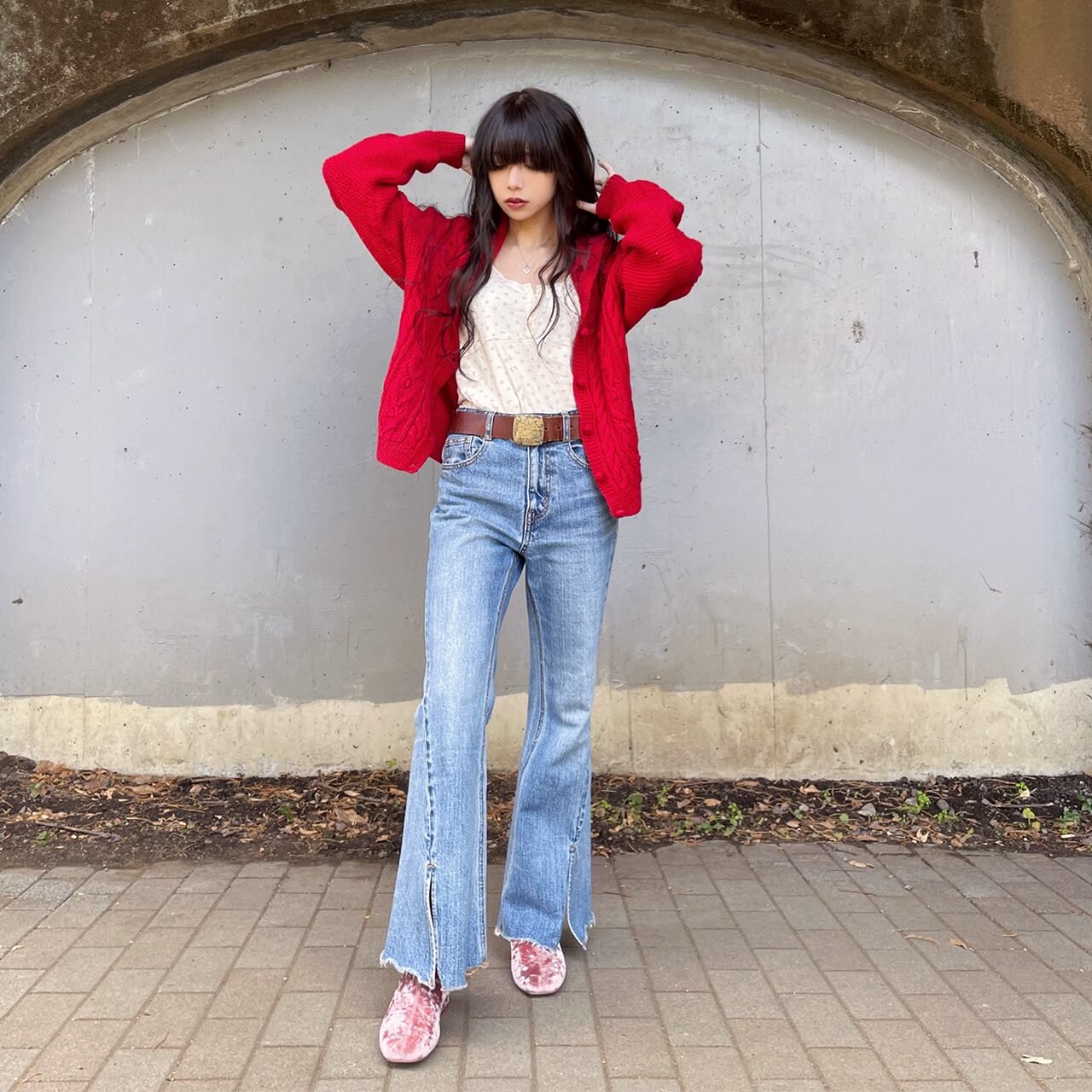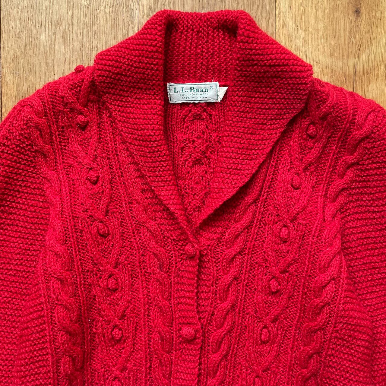 ぽつんぽつんとついたくるみボタンがかわいいL.L.Beanのケーブルカーデガン。