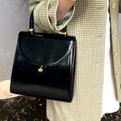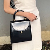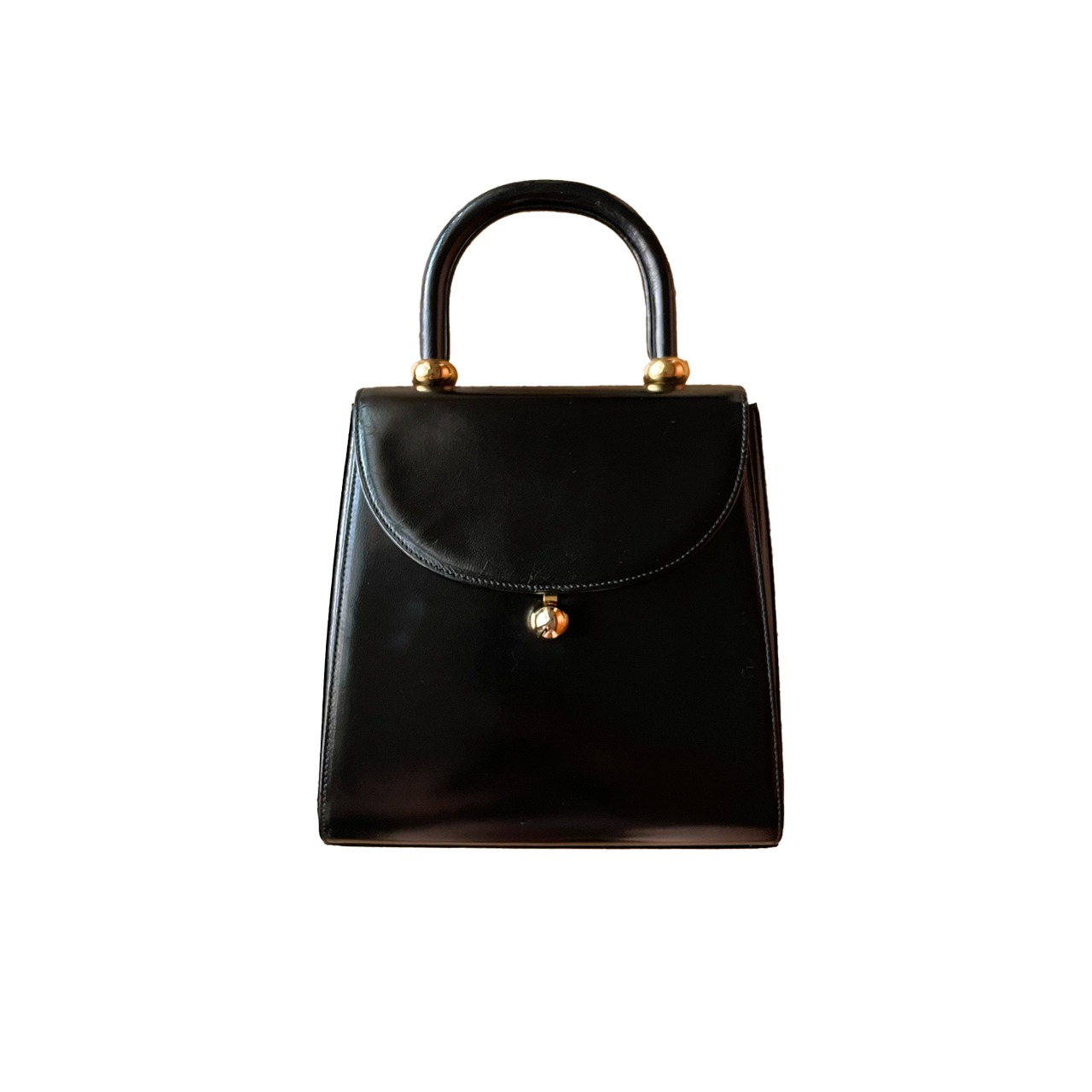 黒にゴールドの組み合わせが高級感溢れるスクエアバッグ。