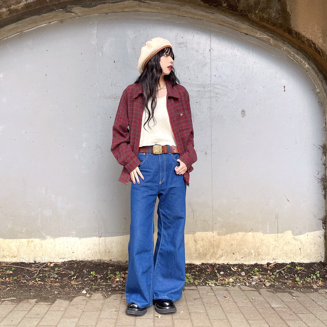 ジップのシャツが珍しく、古着ならではのデザイン。