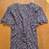 たっぷりとあしらわれたパールボタンに小花柄がかわいいレトロなワンピース。