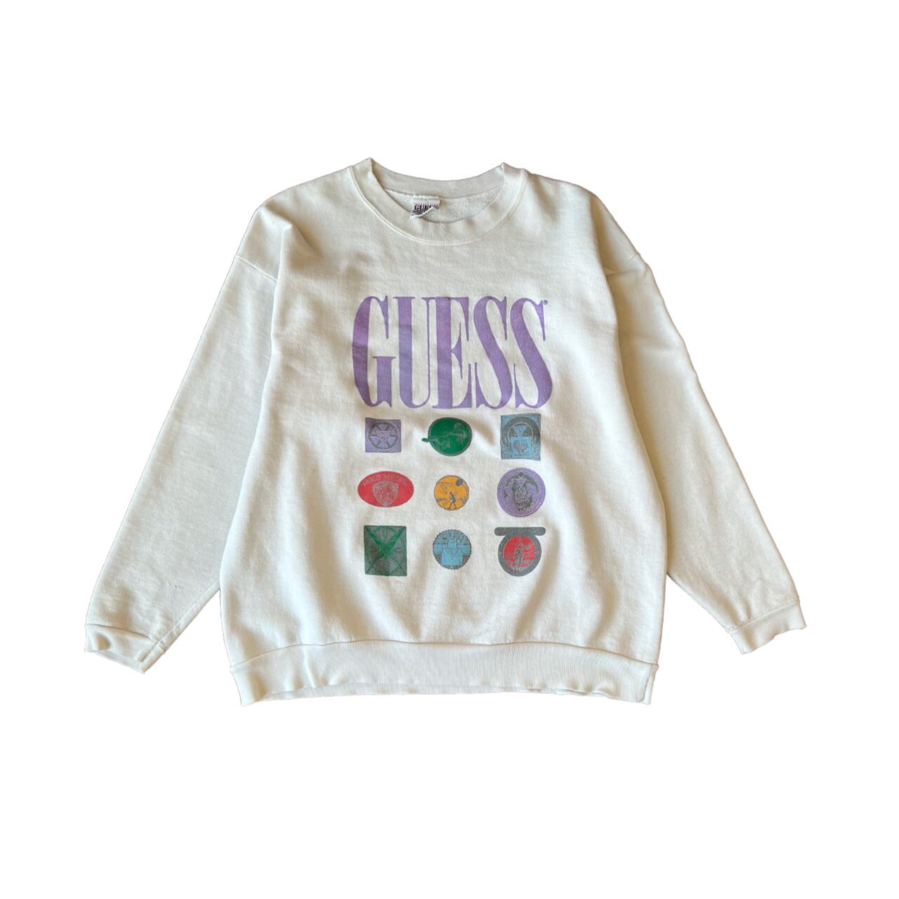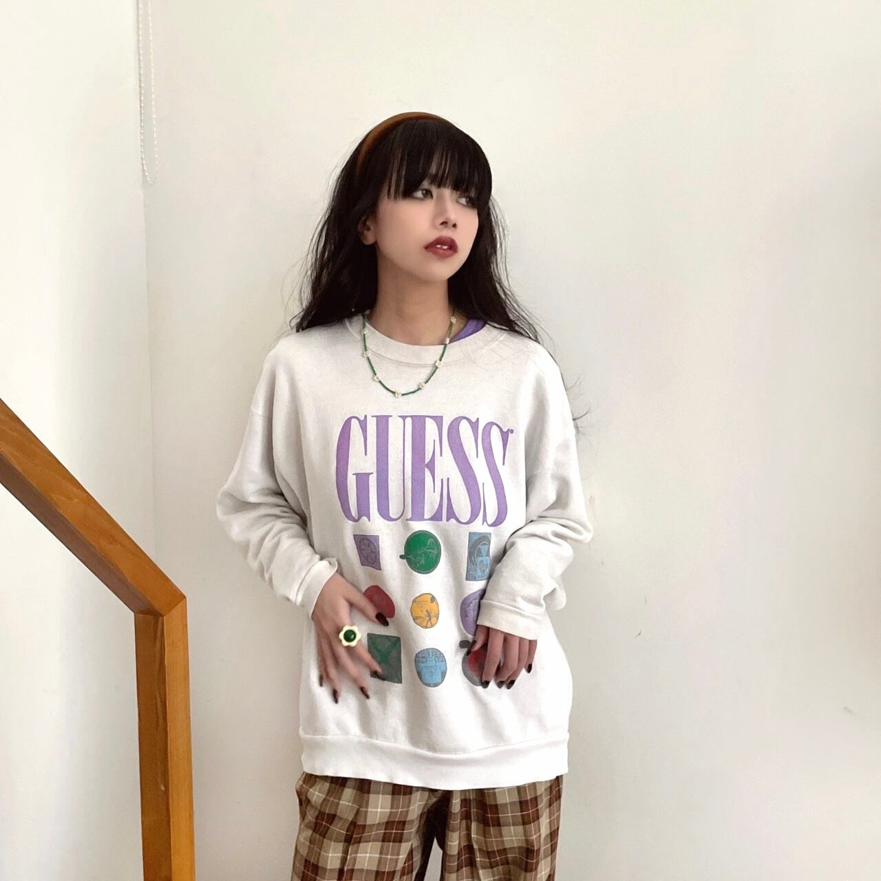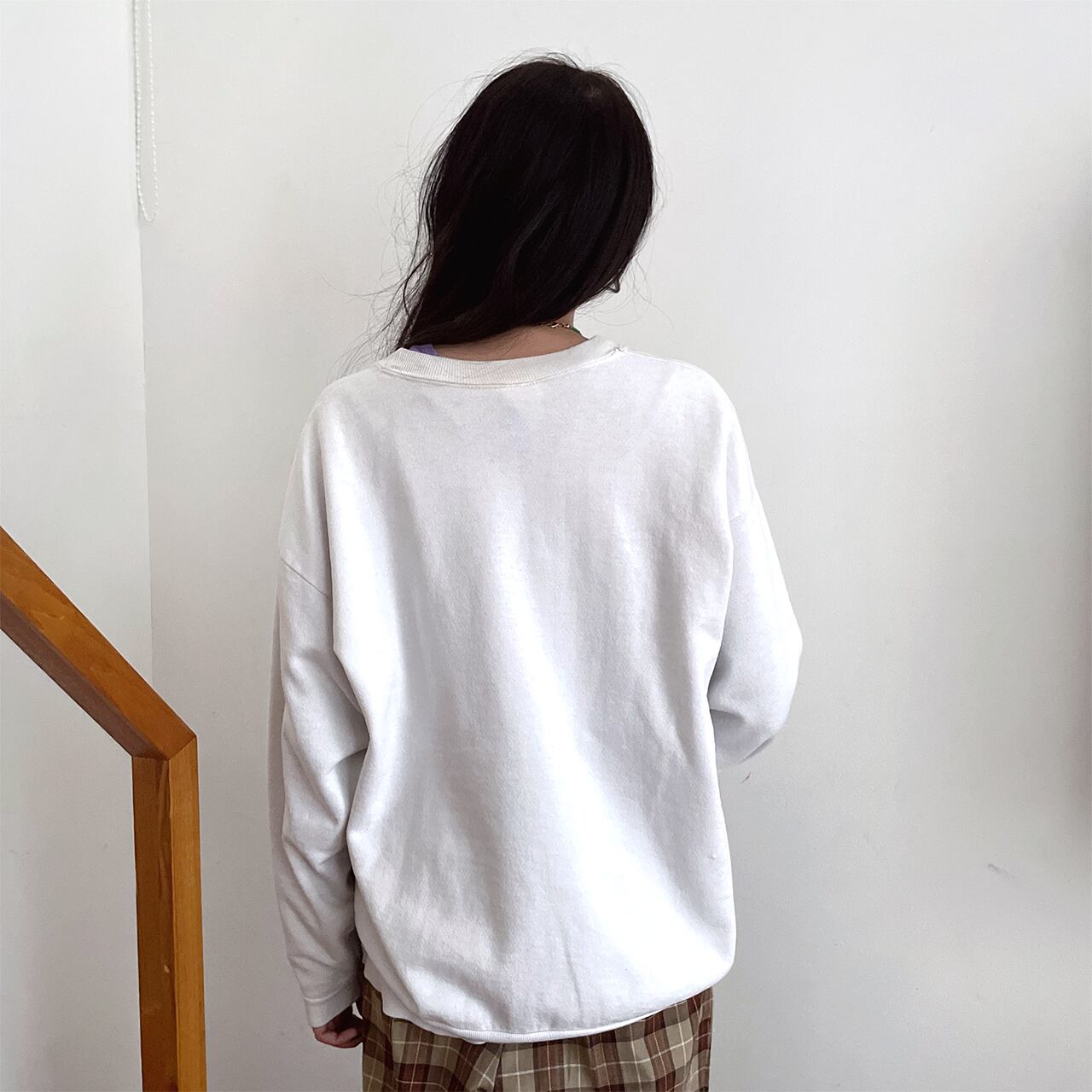 オフホワイトの生地にパープルのロゴがかわいいスウェット。