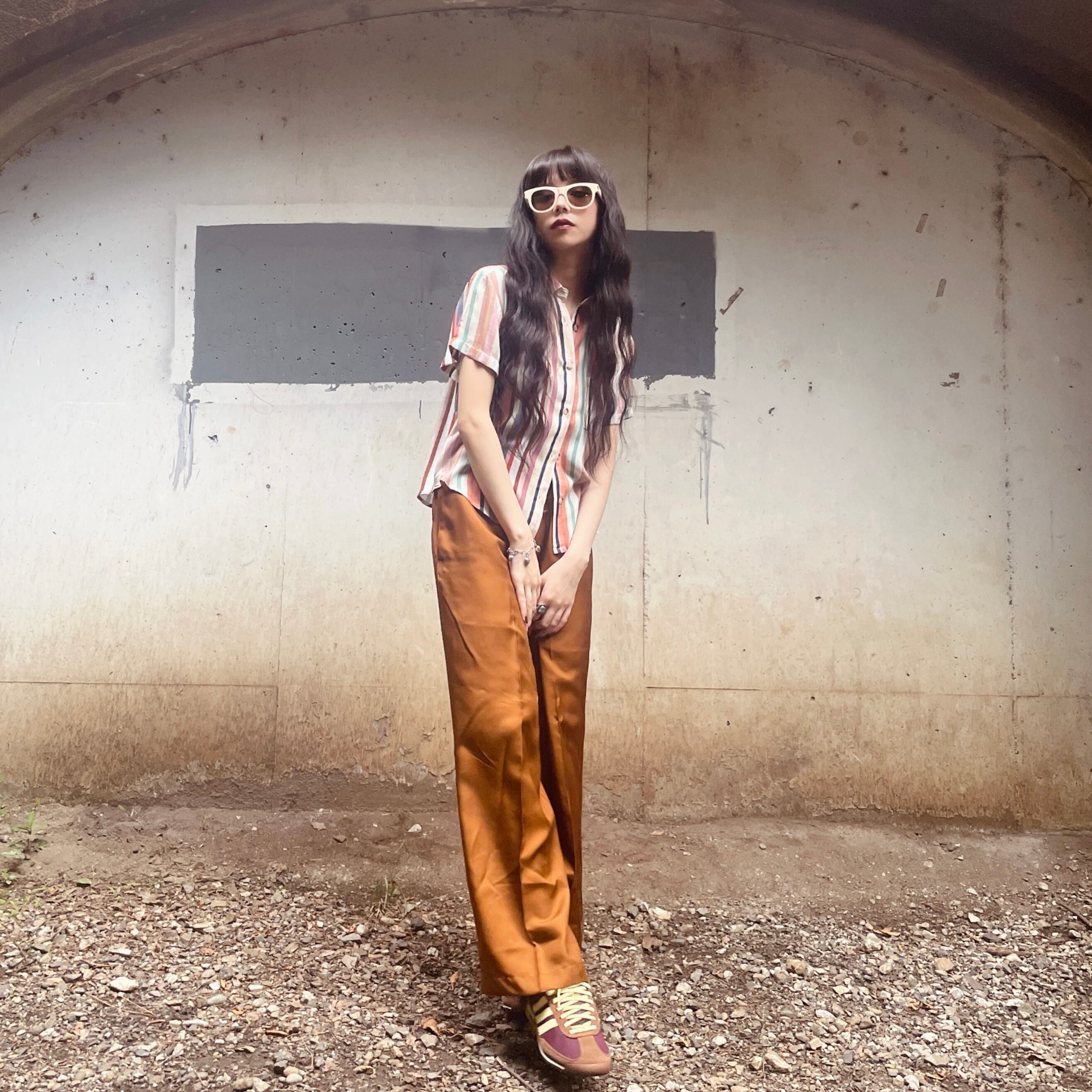 腰骨辺りのショート丈がボトムスを選ばず着ていただけます。