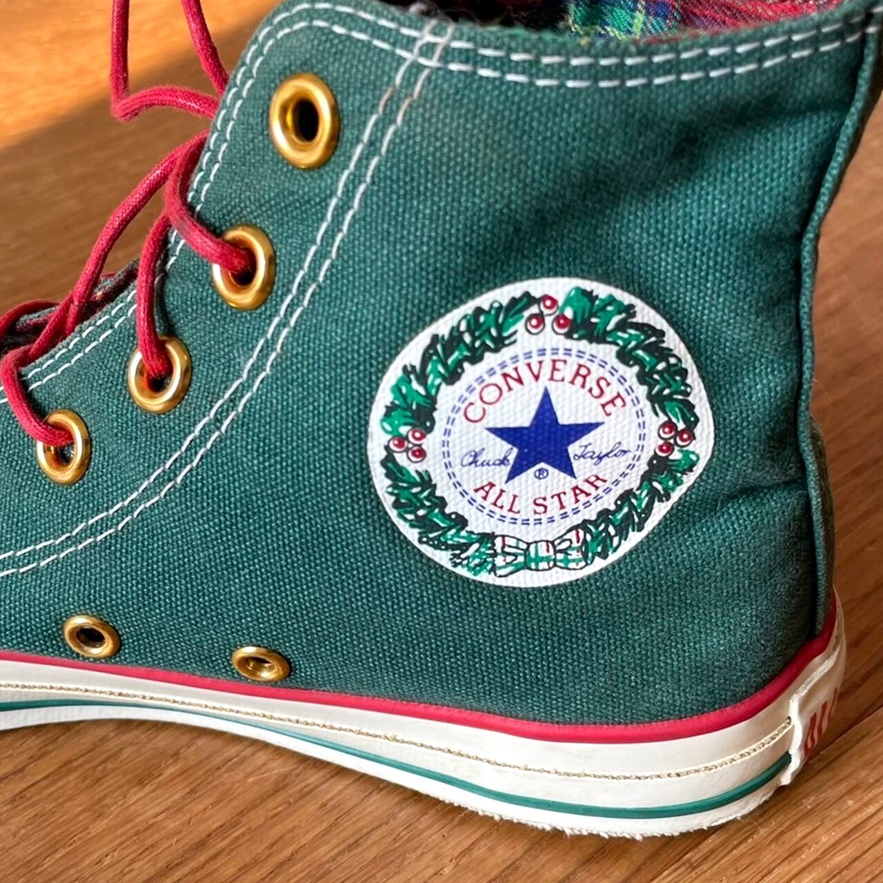 ヴィンテージ感のあるグリーンにちらりと覗く赤チェック。