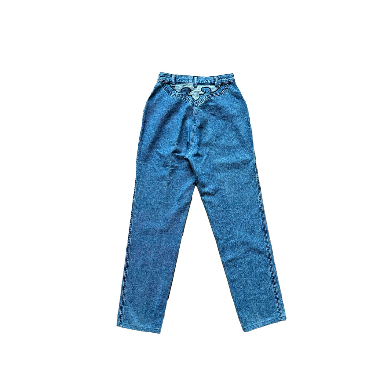 深めの股上に、ゆったりとしたテーパードデニム。