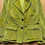 肩パット入りでシルエットが美しく、光沢感のあるベロア素材が上品な印象に。