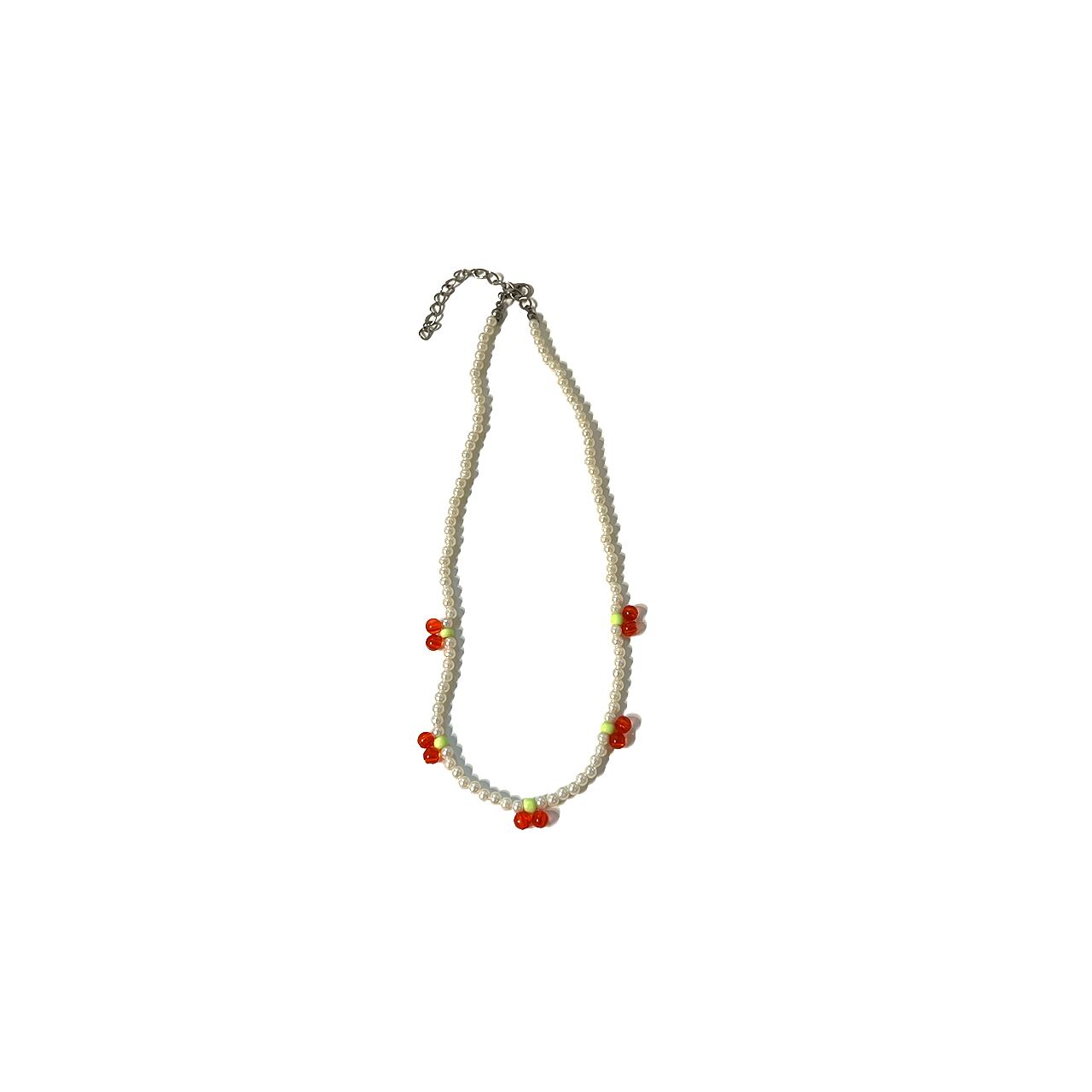パールのようにつるんとしたしろいビーズ×差し色の赤はかわいいです