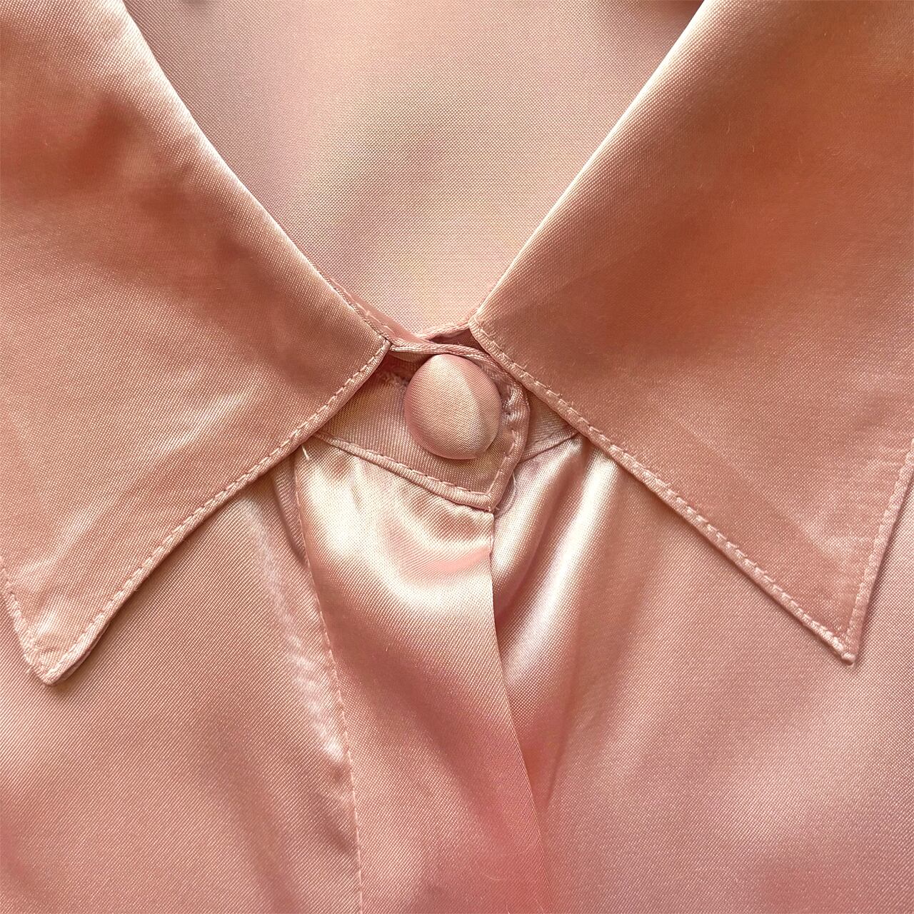 淡いピンクに第一ボタンと袖のくるみボタンがまるんとかわいいです。