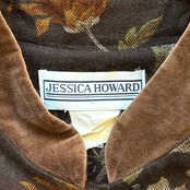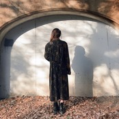 襟と袖先、ボタンはスウェード素材に、後ろのリボンもポイントです。